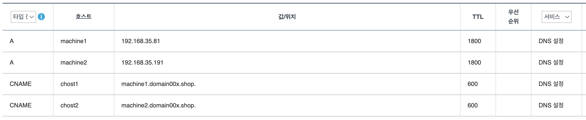다음으로 DNS를 만들어보았다. 가비아에서 500원을 주고 샀다. 설정은 아래와 같다.
